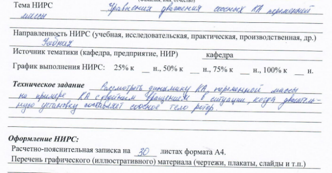 НИР: Уравнения движения соосных КА переменной массы