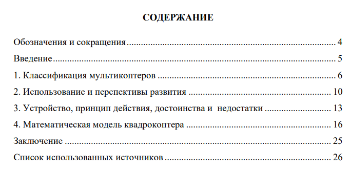 Техническое задание Проанализировать достоинства, недостатки и перспективы развития мультикоптеров, описать устройство и принцип действия квадрокоптера, получить математическую модель, описывающую его угловую и пространственную динамику