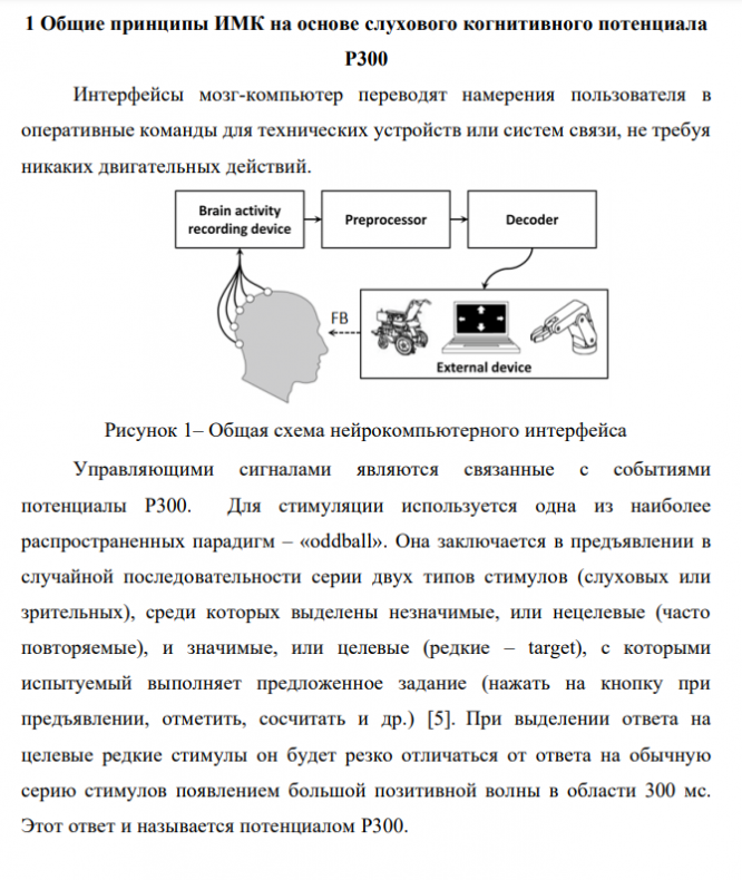 НИР: Обзор применения современных ИМК на основе слуховых когнитивных вызванных потенциалов Р300