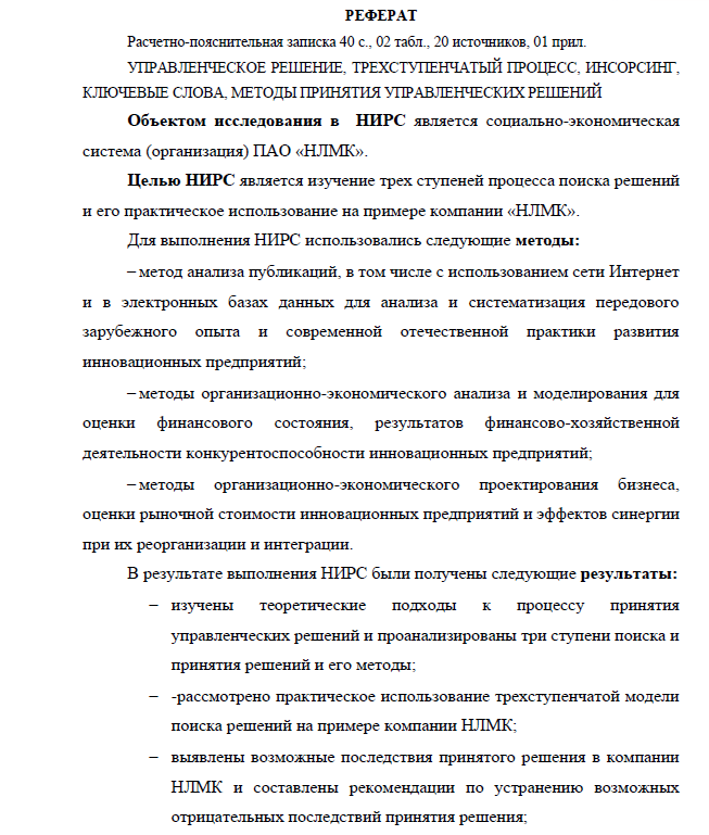 НИР: Поиск решений как трехступенчатый процесс на примере ПАО "НЛМК"
