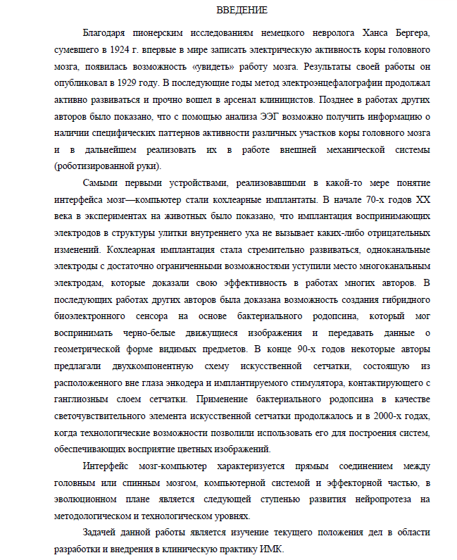 НИР: Современное состояние и перспективы развития интерфейса мозг-компьютер