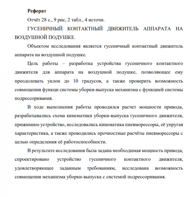 Цель работы – разработка устройства гусеничного контактного движителя для аппарата на воздушной подушке, позволяющее ему преодолевать уклон до 10 градусов, а также проверить возможность совмещения функци системы уборки-выпуска механизма с функцией системы подрессоривания.