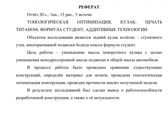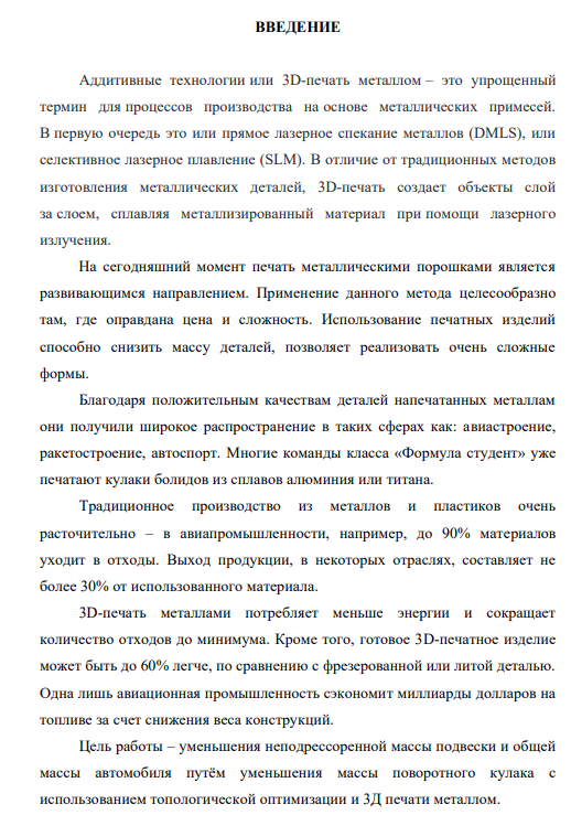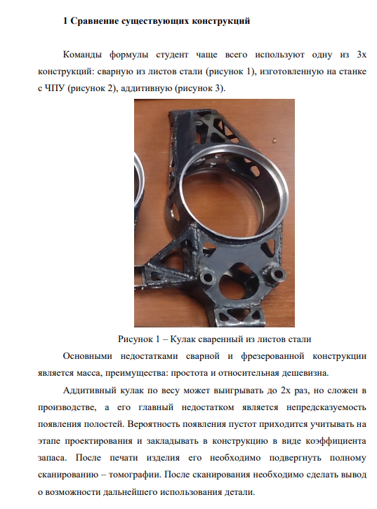 Объектом исследования является задний кулак колёсно – ступичного узла, многорычажной подвески болида класса формула студент. Цель работы – уменьшение массы поворотного кулака с целью уменьшения неподрессоренной массы подвески и общей массы автомобиля.