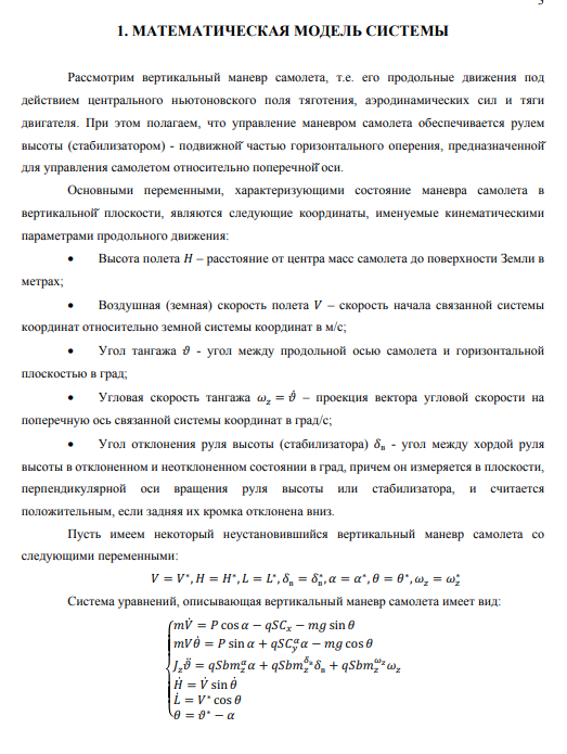 НИР: Анализ и синтез системы управления продольным короткопериодическим движением самолета