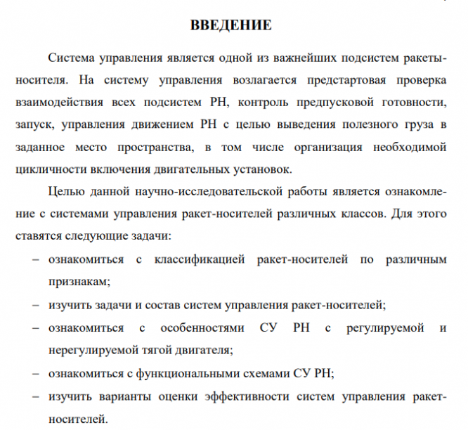 Целью данной научно-исследовательской работы является ознакомление с системами управления ракет-носителей различных классов. Для этого ставятся следующие задачи:  ознакомиться с классификацией ракет-носителей по различным признакам;  изучить задачи и состав систем управления ракет-носителей;  ознакомиться с особенностями СУ РН с регулируемой и нерегулируемой тягой двигателя;  ознакомиться с функциональными схемами СУ РН;  изучить варианты оценки эффективности систем управления ракетносителей.