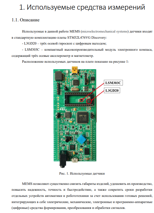Главная » Учебные материалы » Технические науки » Научно-исследовательские работы (НИР) » МГТУ им. Н.Э.Баумана » Несколько классов/семестров » Исследование возможностей платы STM32L476VG DISCOVERY по регистрации положения в пространстве