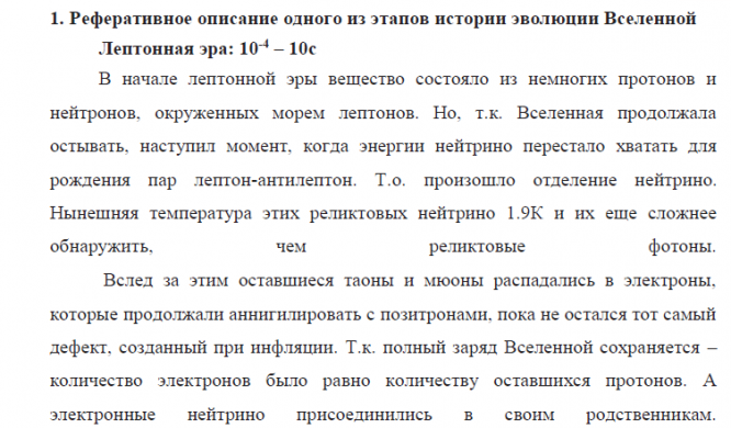 НИР: Реферативное описание одного из этапов эволюции Вселенной (лептонная эра)