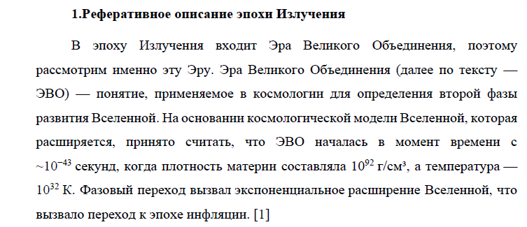НИР: Реферативное описание эпохи Излучения