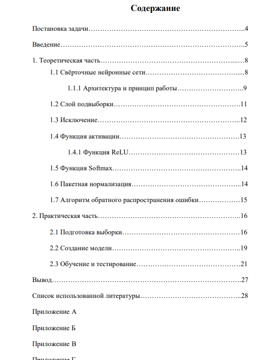 В данной работе стоит задача классификации дорожных знаков. Необходимо реализовать модель свёрточной нейронной сети, подготовить обучающую и тестовую выборку дорожных знаков, провести настройку созданной модели, и осуществить тестирование сети