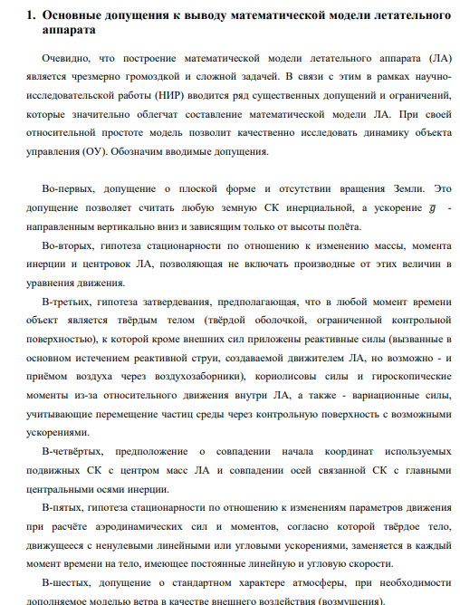НИР: Составление математической модели для создания алгоритмов траекторного управления тяжёлыми летательными аппаратами