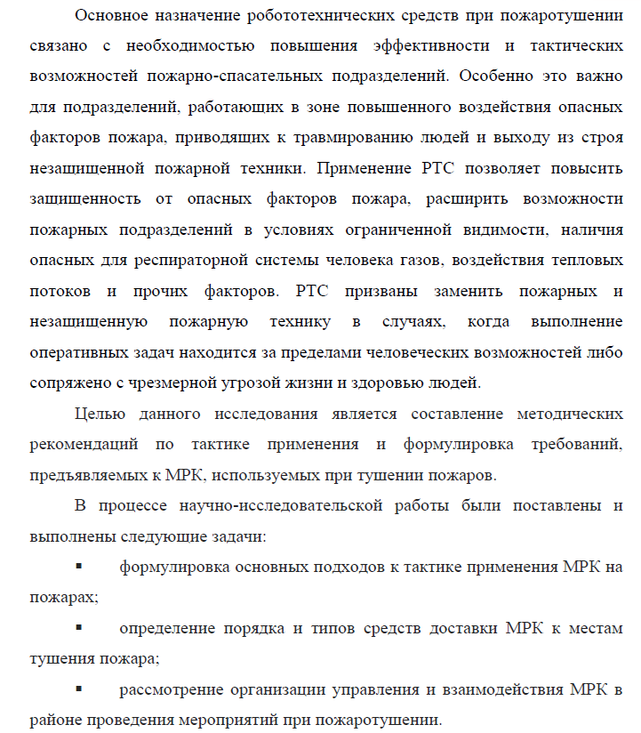 НИР: Разработка методических рекомендаций по тактике применения наземных МРК, используемых при тушении пожаров
