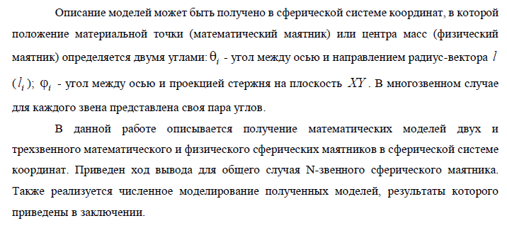 Для студентов МГТУ им. Н.Э.Баумана по предмету Технические наукиМатематическое моделирование многозвенного сферического маятникаМатематическое моделирование многозвенного сферического маятника