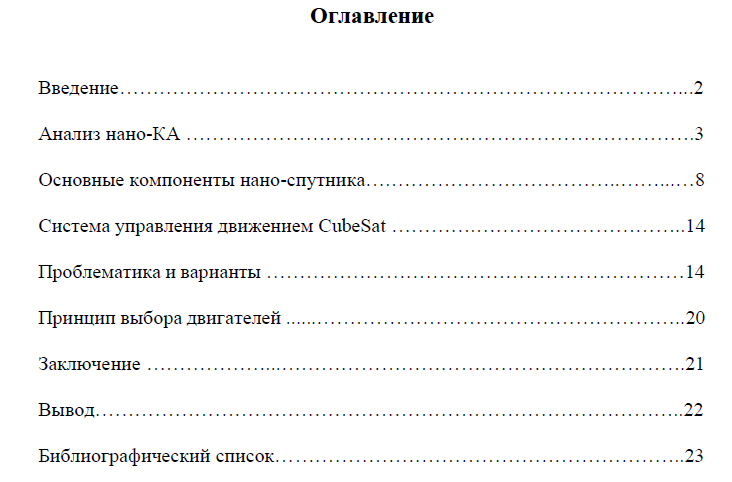 НИР: Анализ наноспутников стандарта CubeSat. Система управления движением