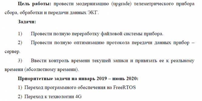 НИР: Модернизация телеметрического прибора сбора, обработки и передачи данных ЭКГ