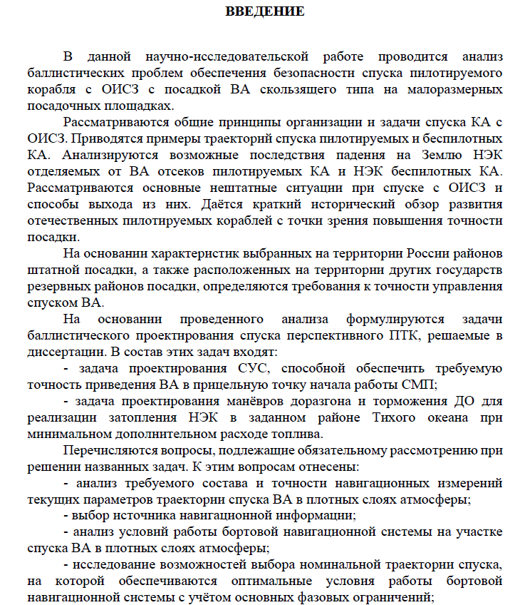 НИР: Анализ проблем обеспечения безопасности спуска аппарата в атмосфере Земли