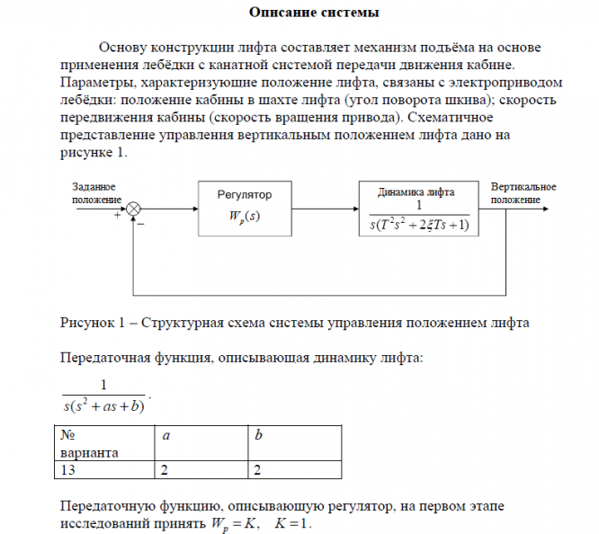Для студентов МГТУ им. Н.Э.Баумана по предмету Технические наукиСистема управления положением лифта (вариант №13)Система управления положением лифта (вариант №13)