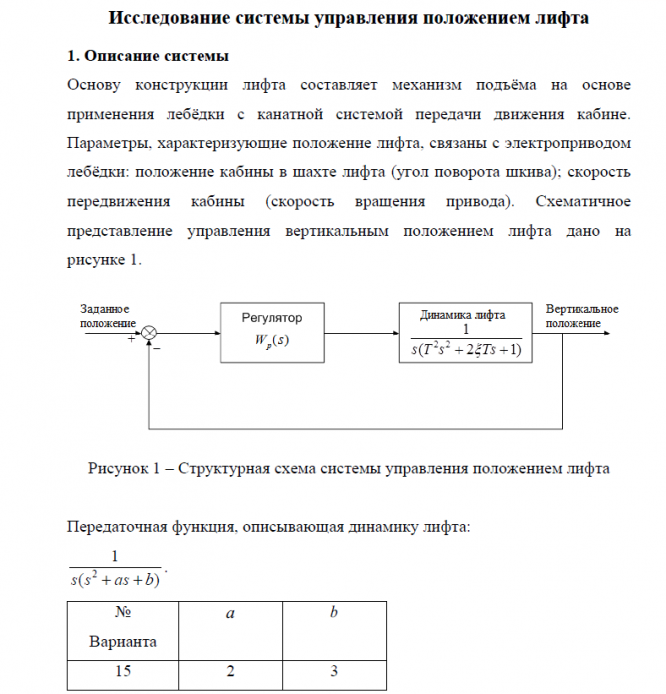Для студентов МГТУ им. Н.Э.Баумана по предмету Технические наукиСистема управления положением лифта (вариант №15)Система управления положением лифта (вариант №15)
