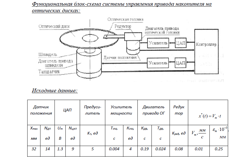 НИР: Динамический расчет системы автоматического управления скорости вращения оптического диска (вариант №8)