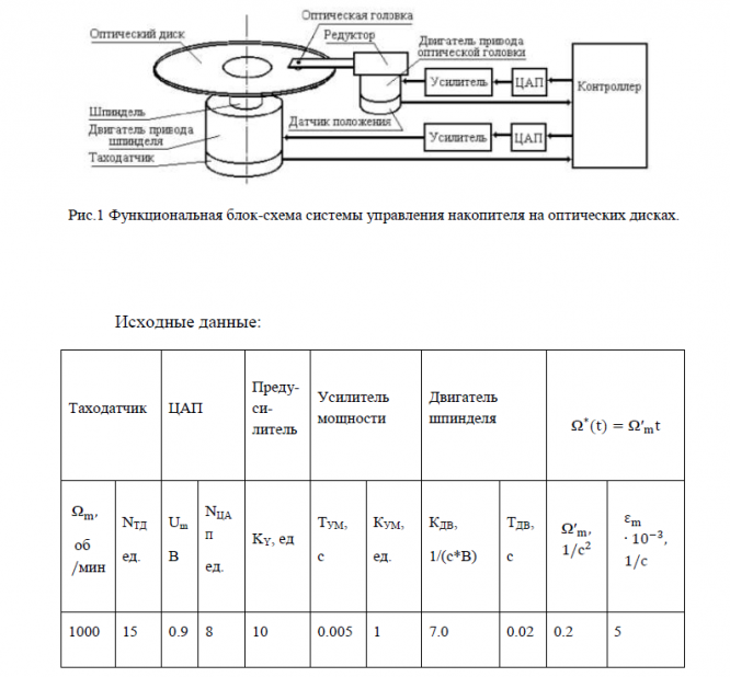 НИР: Динамический расчет системы автоматического управления скорости вращения оптического диска (CD-ROM) (вариант №20)