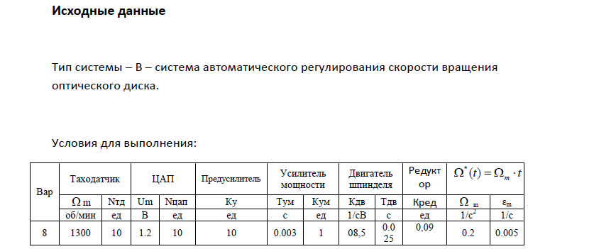 НИР: Динамический расчет системы автоматического управления скорости вращения оптического диска (вариант №8)