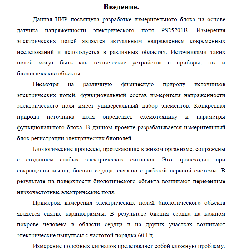НИР: Использование датчика электрического поля для контролирования состояния человека-оператора
