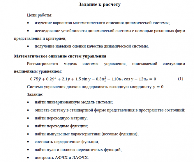 НИР: Математическое описание систем управления и их анализ