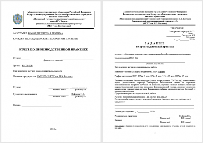 Для студентов МГТУ им. Н.Э.Баумана по предмету Технические наукиНИРС по теме: Изменение температурного режима тканей при фотодинамической терапииНИРС по теме: Изменение температурного режима тканей при фотодинамической терапии