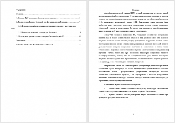 НИР: НИРС по теме: Изменение температурного режима тканей при фотодинамической терапии