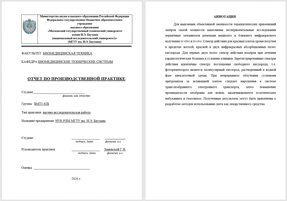 Для студентов МГТУ им. Н.Э.Баумана по предмету Технические наукиНИРС по теме: Создание фототерапевтических систем с биологической обратной связиНИРС по теме: Создание фототерапевтических систем с биологической обратной связи