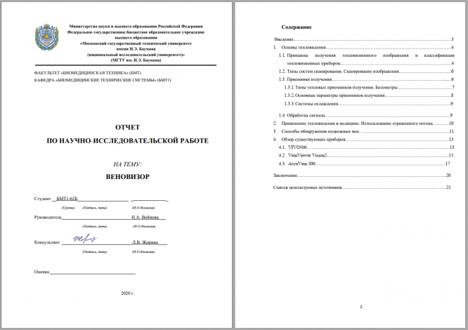 Для студентов МГТУ им. Н.Э.Баумана по предмету Технические наукиНИРС по теме: ВеновизорНИРС по теме: Веновизор