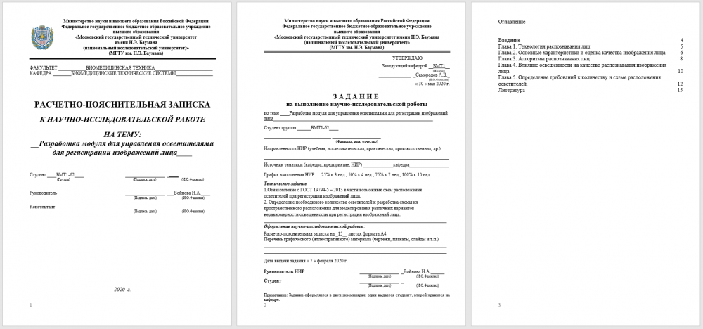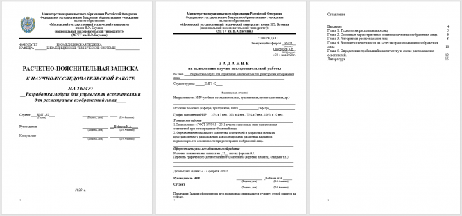 Для студентов МГТУ им. Н.Э.Баумана по предмету Технические наукиНИРС по теме: Разработка модуля для управления осветителями для регистрации изображений лицаНИРС по теме: Разработка модуля для управления осветителями для регистрации изображений лица