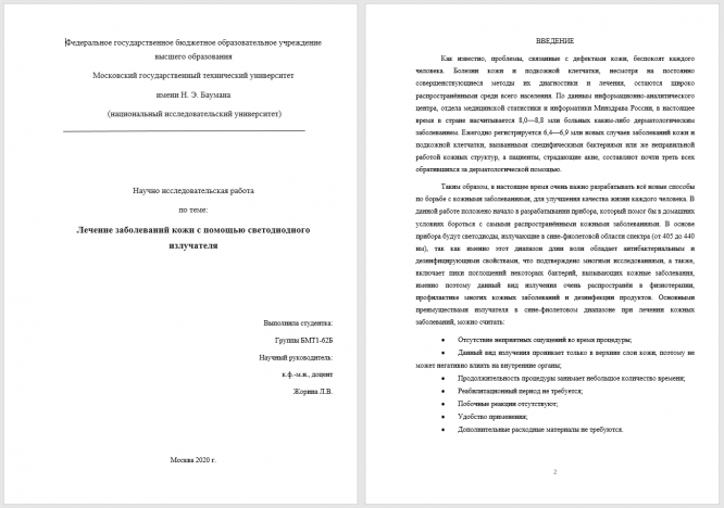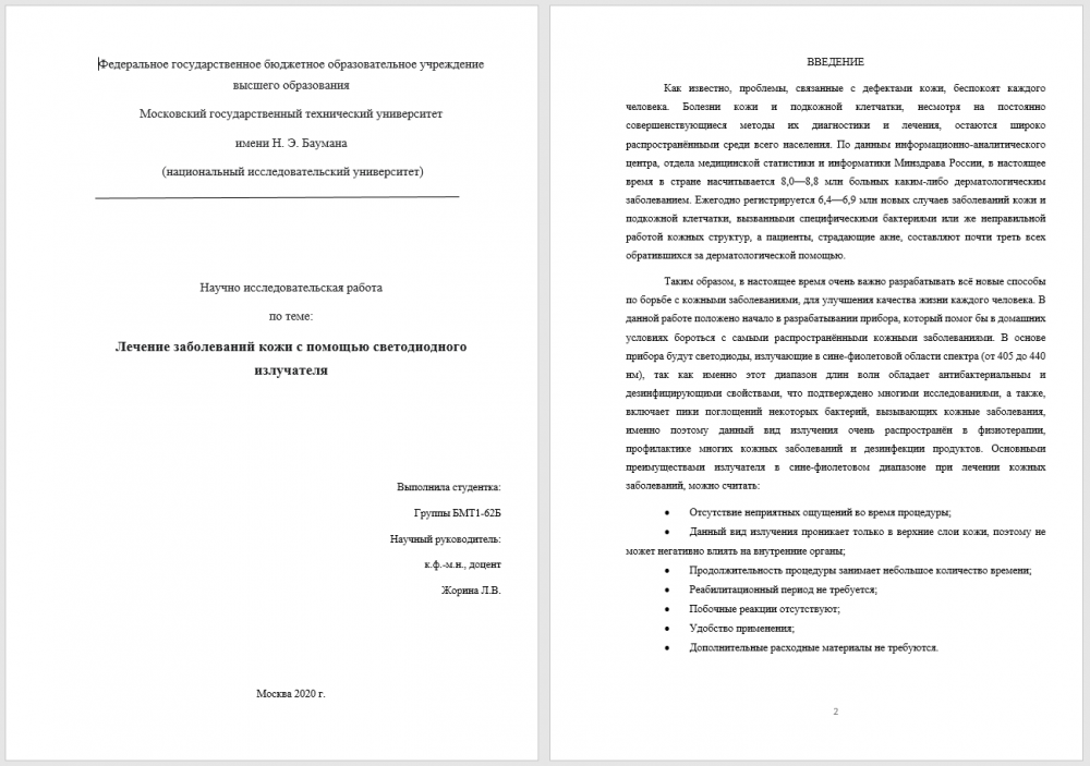 Для студентов МГТУ им. Н.Э.Баумана по предмету Технические наукиНИРС по теме: Лечение заболеваний кожи с помощью светодиодного излучателяНИРС по теме: Лечение заболеваний кожи с помощью светодиодного излучателя