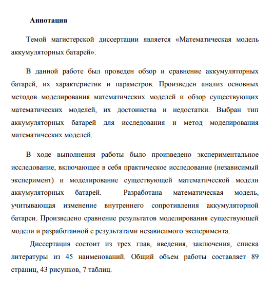 НИР на тему: "Математическая модель аккумуляторных батарей "