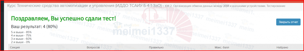 Ответы к заданиям КМ-2: КМ-2. Организация обмена данных между ЭВМ и внешними устройствами. Тестирование - 80%