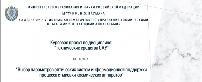 Для студентов МГТУ им. Н.Э.Баумана по предмету Технические средства систем автоматического управленияВыбор параметров оптической системы информационной поддержки процесса стыковки космических аппаратовВыбор параметров оптической системы информационной поддержки процесса стыковки космических аппаратов