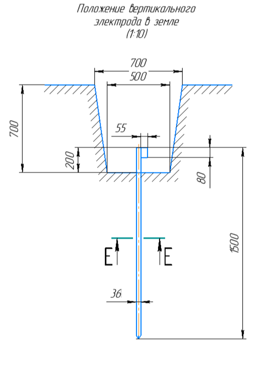 Рис. 1.2 Схема расположения стержня вертикального заземлителя в грунте