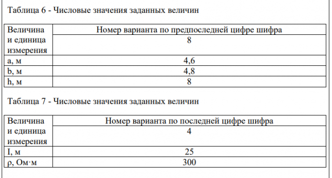 Задача 3 Для защиты здания шириной а, длинной b и высотой от прямых ударов молнии установлен стержневой молниеотвод. Удельное сопротивление грунта p3, Ом·м; ток молнии I, кА. Требуется: 1. начертить эскиз контура заземления молниеотвода, состоящий (в общем случае) из нескольких вертикальных и горизонтальных электродов. 2. рассчитать: а) импульсное сопротивление молниеотвода Rи . б) минимально допустимое расстояние от молниеотвода до защищаемого объекта Imin. в) радиус зоны защиты r на высоте . г) высоту молниеотвода H.