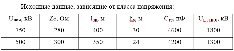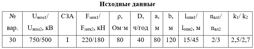 1. Определить требуемое число и тип изоляторов гирлянд на промежуточных опорах ЛЭП, подходящих к ОРУ, и гирлянд на порталах ОРУ. Расчеты выполнить для обоих классов напряжения. Для всех выбранных гирлянд рассчитать импульсные напряжения перекрытия.