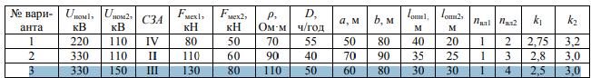 Типовой расчет по дисциплине «Техника высоких напряжений» «ЗАЩИТА ОТКРЫТОГО РАСПРЕДЕЛИТЕЛЬНОГО УСТРОЙСТВА (ОРУ) ПОДСТАНЦИИ» 1. ЗАДАНИЕ НА РАСЧЕТ 1.1. Определить параметры изолирующих подвесок для промежуточных опор воздушных линий (ВЛ), подходящих к ОРУ, и для порталов ОРУ. Расчеты выполнить для обоих классов напряжения. Определить импульсные напряжения перекрытия изоляционных конструкций для каждого расчетного случая. 1.2. Определить параметры контура заземления подстанции (длину и число верти кальных электродов, шаг сетки), обеспечивающие допустимую величину его стационарного сопротивления заземления. 1.3. Построить зависимость импульсного сопротивления контура заземления подстан ции от тока молнии. 1.4. Рассчитать зависимость максимального напряжения на силовом автотрансформа торе от крутизны фронта набегающей волны, определить длину опасной зоны и защищенно го подхода. Определить ожидаемое число повреждений изоляции оборудования на подстан ции (ОРУ-1 и ОРУ-2, рис. 1) от ударов молнии в ЛЭП в пределах защищенного подхода. 1.5. Расставить на территории ОРУ молниеотводы для защиты электрооборудования от прямых ударов молнии, определив их минимально необходимое число и высоту. 1.6. Определить число повреждений в год изоляции электрооборудования ОРУ от прямых ударов молнии в молниеотводы и прорывов молнии в зону защиты. 1.7. Определить показатель грозоупорности подстанции. 1.8. Предложить методы повышения грозоупорности подстанции ![]()