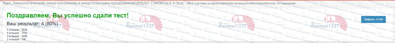 Для студентов ИДДО НИУ «МЭИ» по предмету Технологические энергоносители и энергосистемы предприятийПомощь со сдачей - КМ-2. Системы воздухоснабжения промышленных потребителей. ТестированиеПомощь со сдачей - КМ-2. Системы воздухоснабжения промышленных потребителей. Тестирование