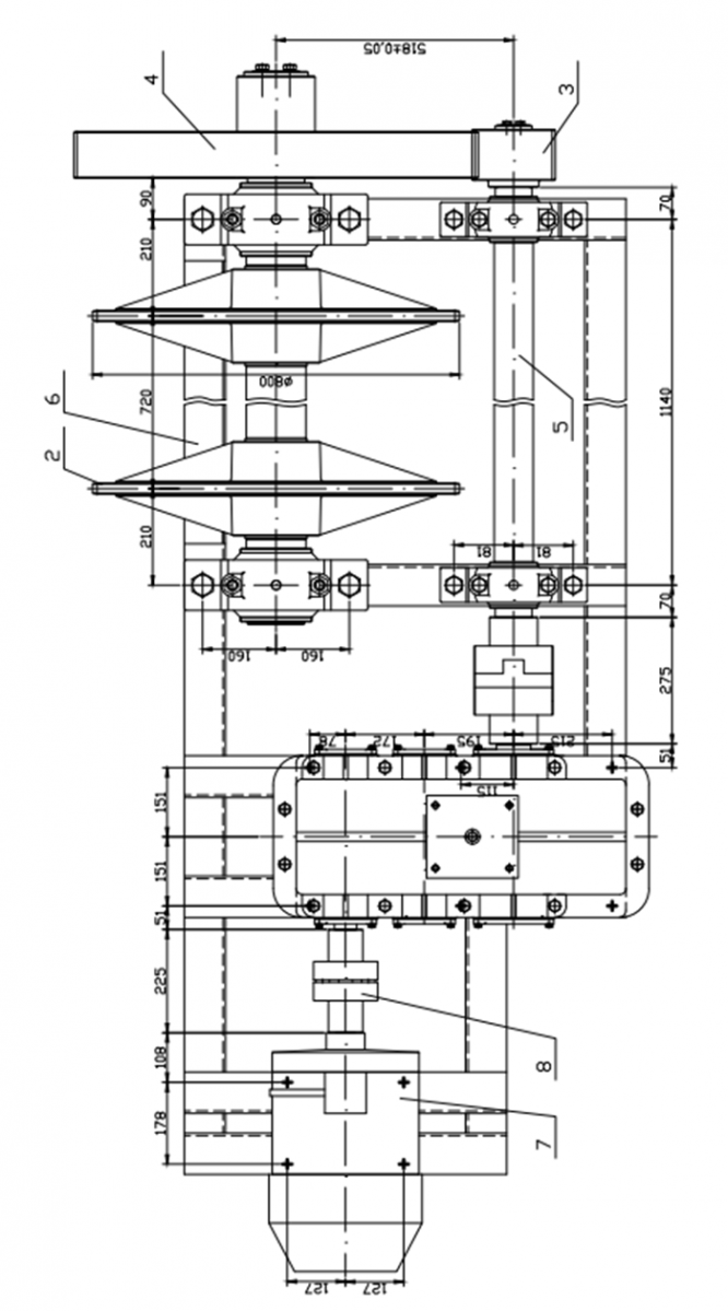 Редуктор цилиндрический двухступенчатый предназначен для передачи крутящего момента от двигателя через открытую зубчатую передачу к приводным звездочкам цепного. При этом происходит уменьшение числа оборотов и увеличение крутящего момента на выходном валу (поз. 6). Конструкция редуктора такова, что двигатель, присоединяемый через втулочно-пальцевую муфту к редуктору, и зубчатое колесо открытой зубчатой передачи находятся на перпендикулярных осях. На конвейере перемещаются штучные грузы небольшой массы (до 10 кг). Цепной конвейер работает в условиях небольших динамических нагрузок, реверсирование конвейера не допускается, поэтому режим работы редуктора – нереверсивный, слабодинамический.