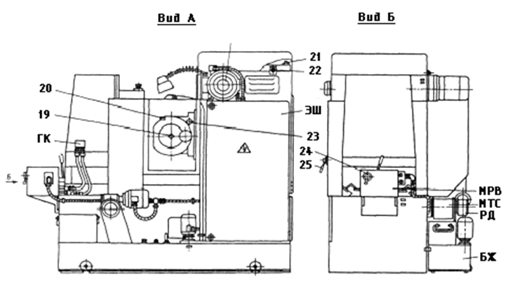 БЖ | бак для охлаждающей жидкости | 23 | винт установки разового перемещения фрезы |