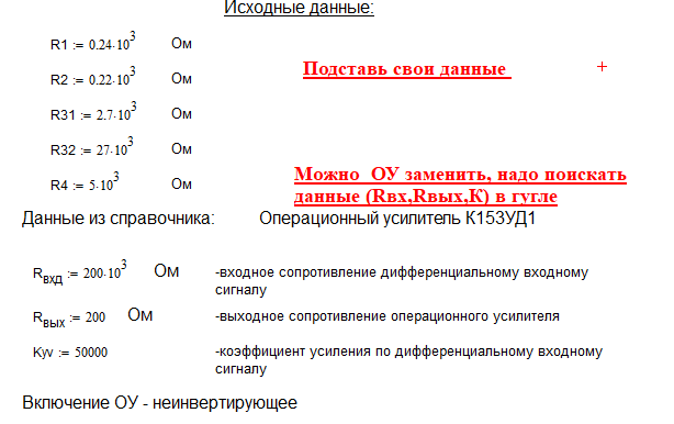 Маткадовский файл куда подставляешь свои значения, можно заменить и сам усилитель, главное не менять способ включения, есть комментарии где и что изменить, и как проверить ответ