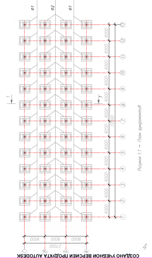 План фундаментов и их размеры показаны на рисунке 1.1 и в таблице 1.1