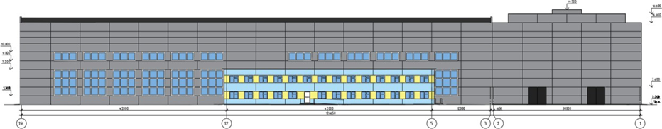 Рисунок 1 – фасад и план цеха Производительность цеха, т/год – 6000 Строительный объем здания, м3 – 82268,03