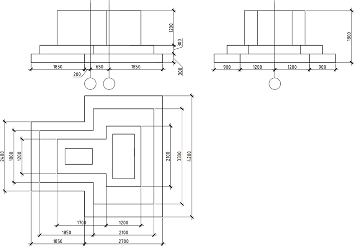 Тип грунта: суглинки (III группа трудности разработки по ГЭСН 2001-01) Таблица 1 – Схемы монолитных фундаментов:
