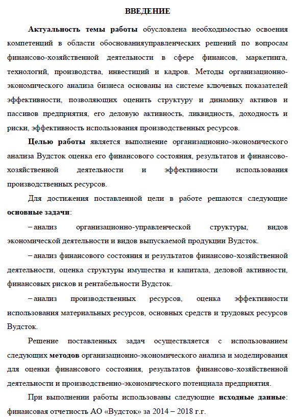 Курсовая работа: Организационно-экономический анализ АО "Вудсток"