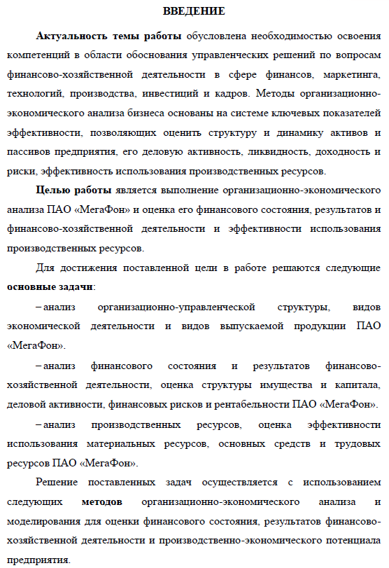 Курсовая работа: Организационно-экономический анализ ПАО "МегаФон"