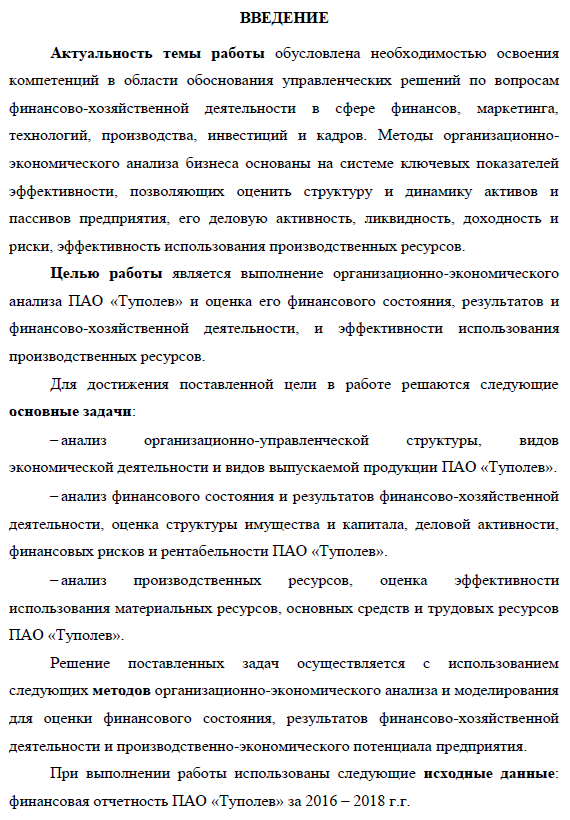 Курсовая работа: Организационно-экономический анализ ПАО "Туполев"