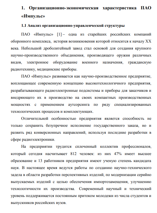 Часть 1. Организационно-управленческая. Выполнить анализ организационноуправленческой структуры, видов экономической деятельности и видов выпускаемой продукции ПАО «Импульс».